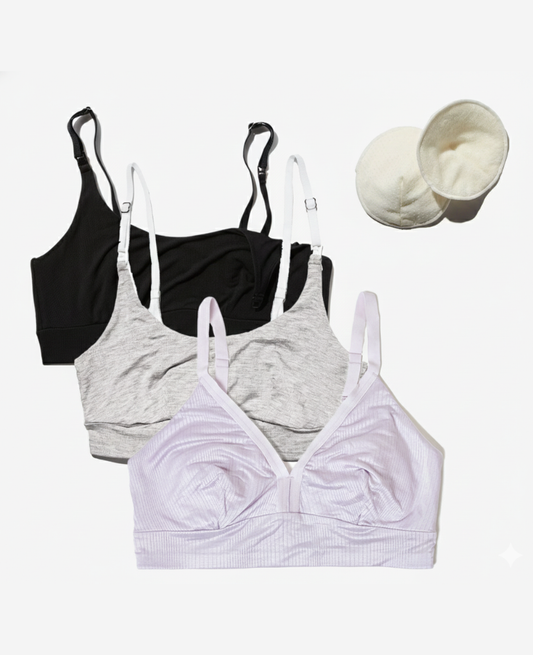 Regular price $121.50Regular priceUnit price / per$159.70Sale price $121.50Everything you need for the early days—two bra styles, nursing pads, and IBCLC-informed design.Sale