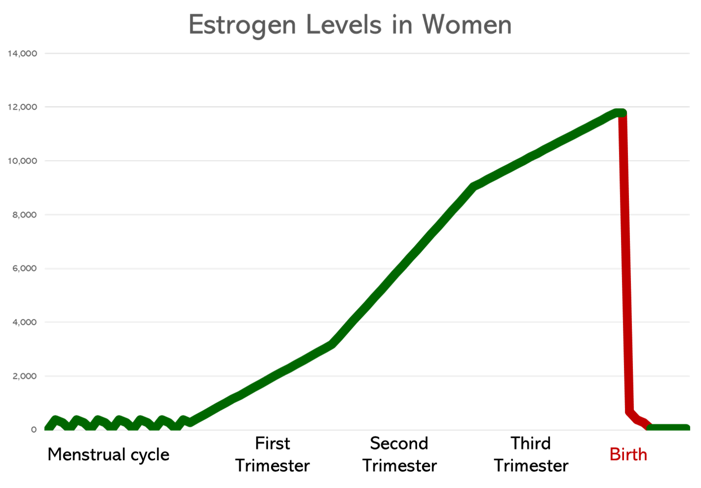 Progesterone and estrogen, hormones that were extremely elevated in pregnancy, fall dramatically upon the removal of the placenta (the source of said elevated hormone levels), enabling the body to produce breast milk. That dramatic fall — a 1,000% change in just a matter of days — can also trigger the onset of extreme postpartum emotions. For some new parents (up to 20%), this period of rollercoaster-like ups and downs can trigger postpartum depression.