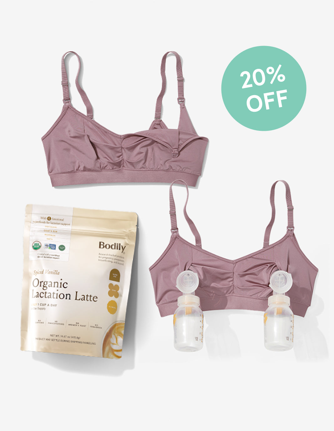 Two of our Best-Selling 4-in-1 Pump and Nursing Bras with our IBCLC Lactation Expert crafted Organic Lactation Latte, now in 14 servings.