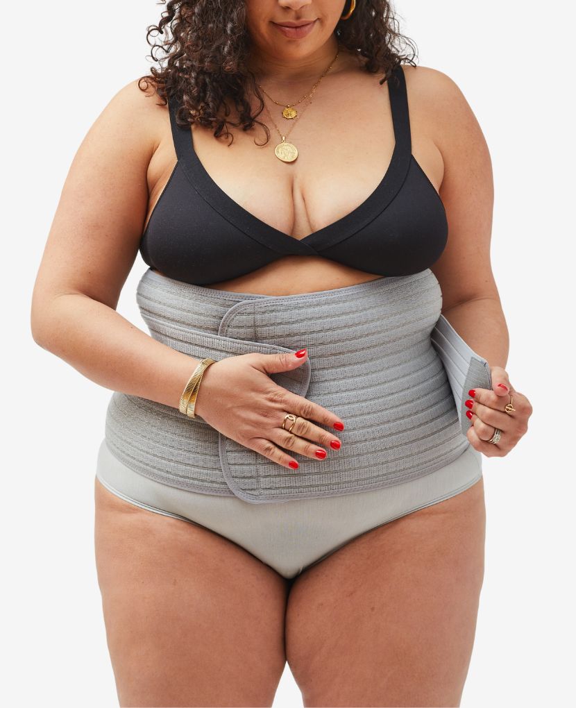 A soft, structured belly band for postpartum recovery, designed to support weakened abdominal muscles and provide relief after both vaginal and C-section birth. The two-layer wrap system lets you customize compression and place support exactly where it feels best—across your lower belly, incision site, or back. Its contoured, low-profile shape slips under clothes and stays comfortable through all-day wear.