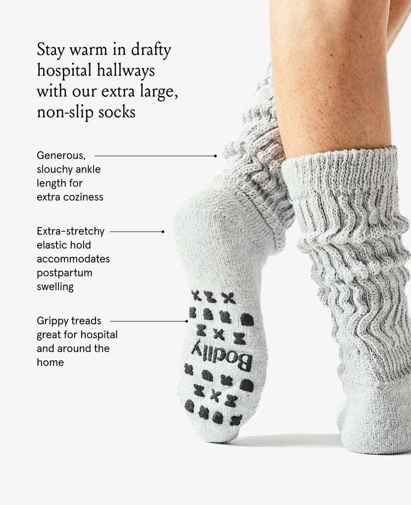 The hospital-issued socks just won’t cut it. Keep warm with cushy, silicone-treaded socks.