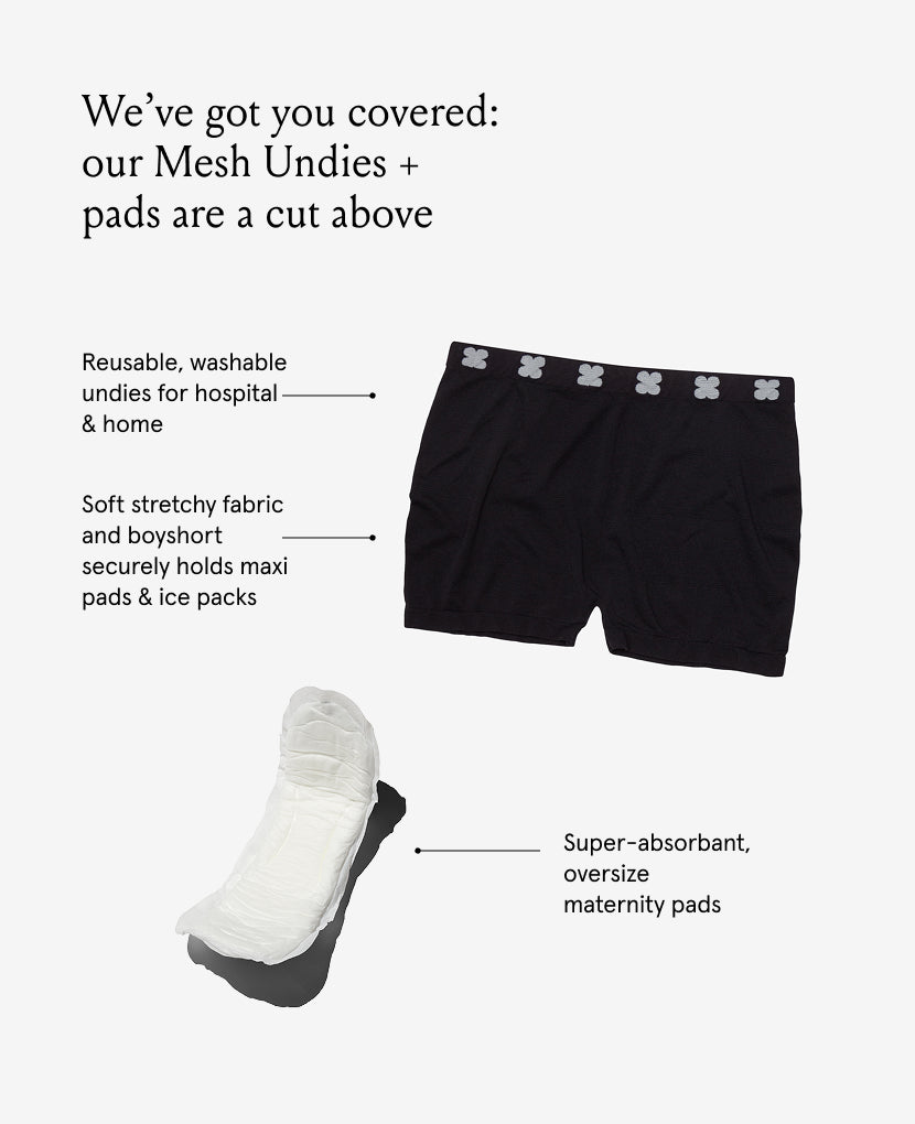 These chic, washable mesh boyshort undies are super stretchy and oh-so-comfortable. (Yes, you read that right — boyshorts). Our postpartum underwear keeps everything — including ice packs and giant maxi pads — contained.