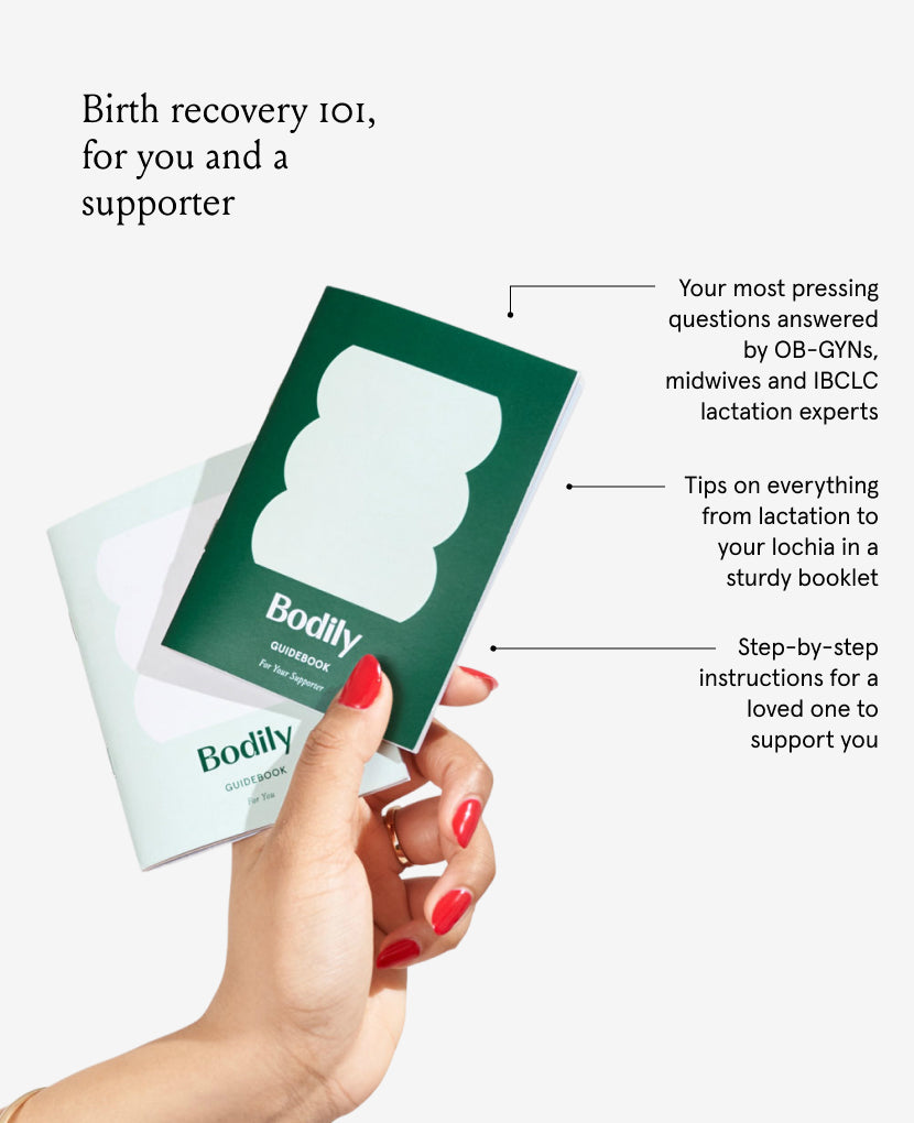 Our pocket-sized guidebooks provide you with the essential information you need to be prepared for birth and postpartum recovery. We want your support system to be able to help however they can, so we also made one for them with step-by-step instructions. While babies still don’t come with instruction manuals, finally birth recovery does!