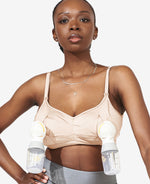 You can wear a more structured bra—like The So Easy Bra, or The Do Anything Bra—for 3 hours or less. In Stage 1 you’re at greater risk for complications like plugged ducts and mastitis, which is why we recommend wearing more compressive bras – like pump bras – for only a few hours. The idea is that you want to avoid becoming engorged, or even full of milk, while wearing a compressive bra. In Stage 1, that happens more frequently, hence the 3-hour limit for wearing compressive bras during this period.